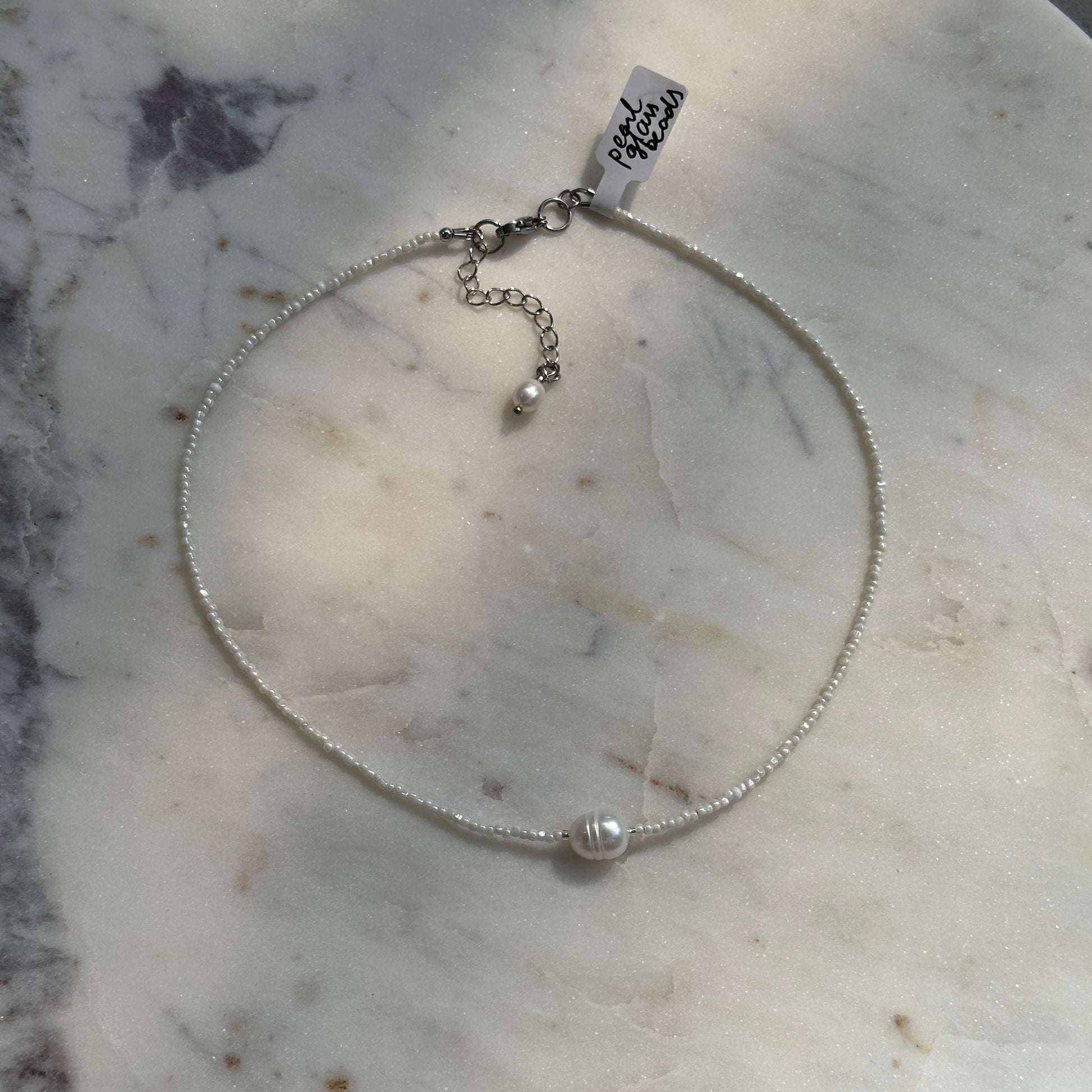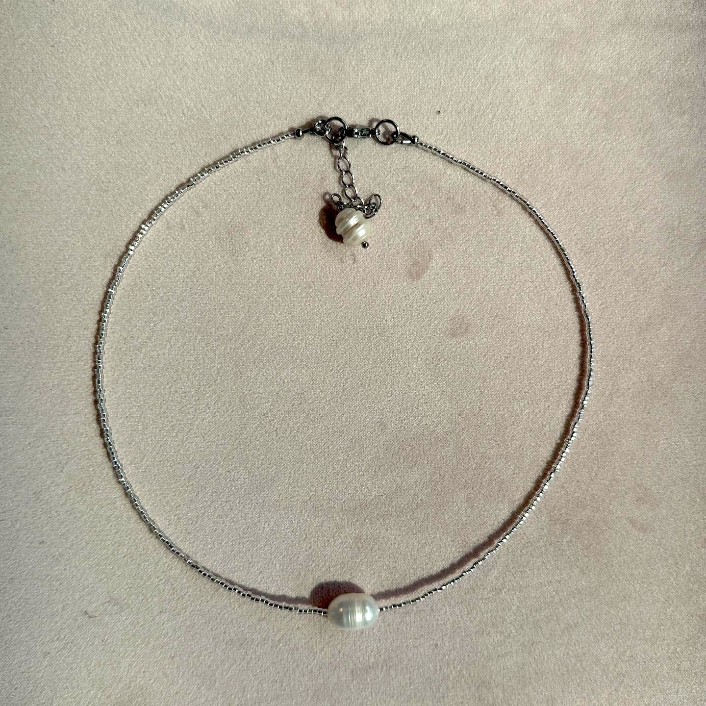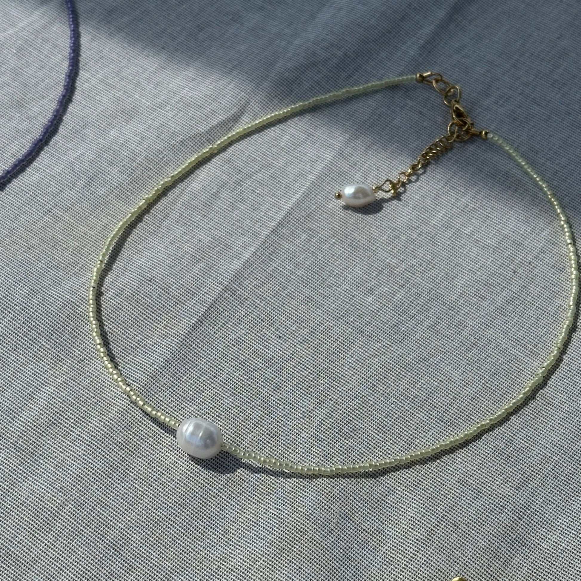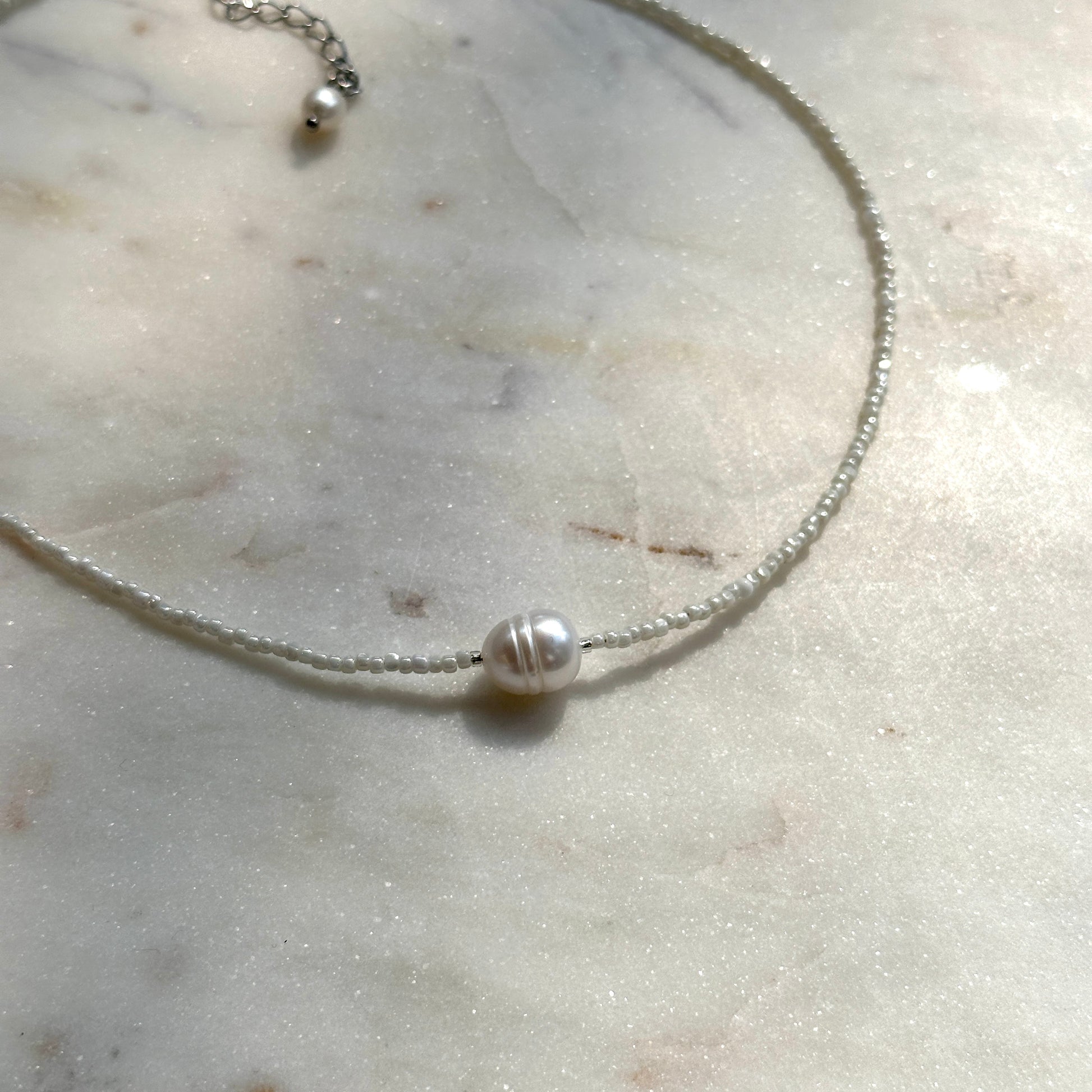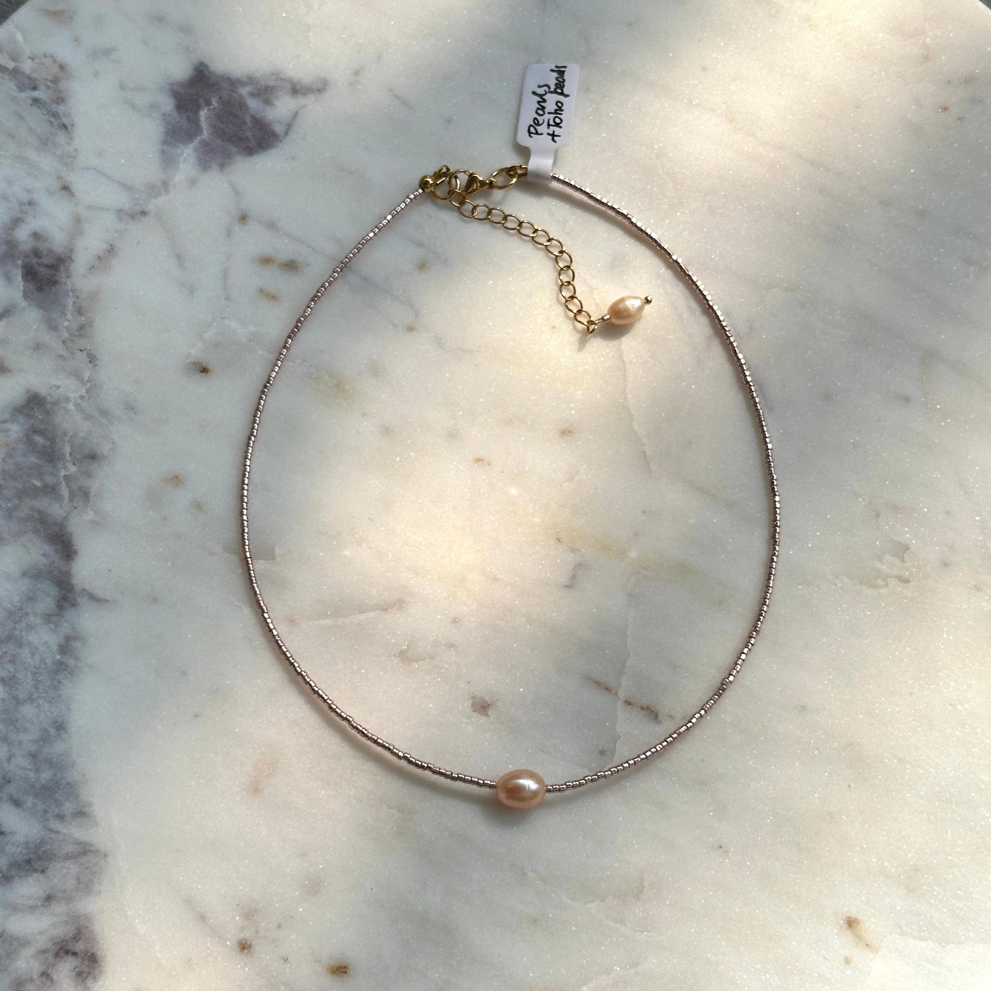 Gisel Necklace is crafted from genuine sweetwater pearls and Japanese Toho beads.