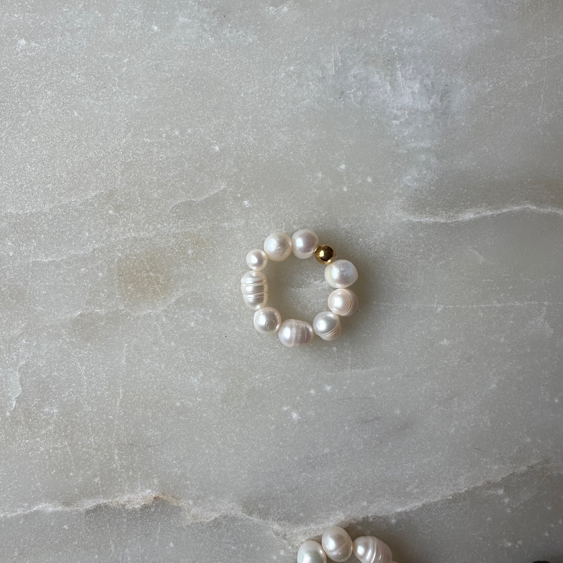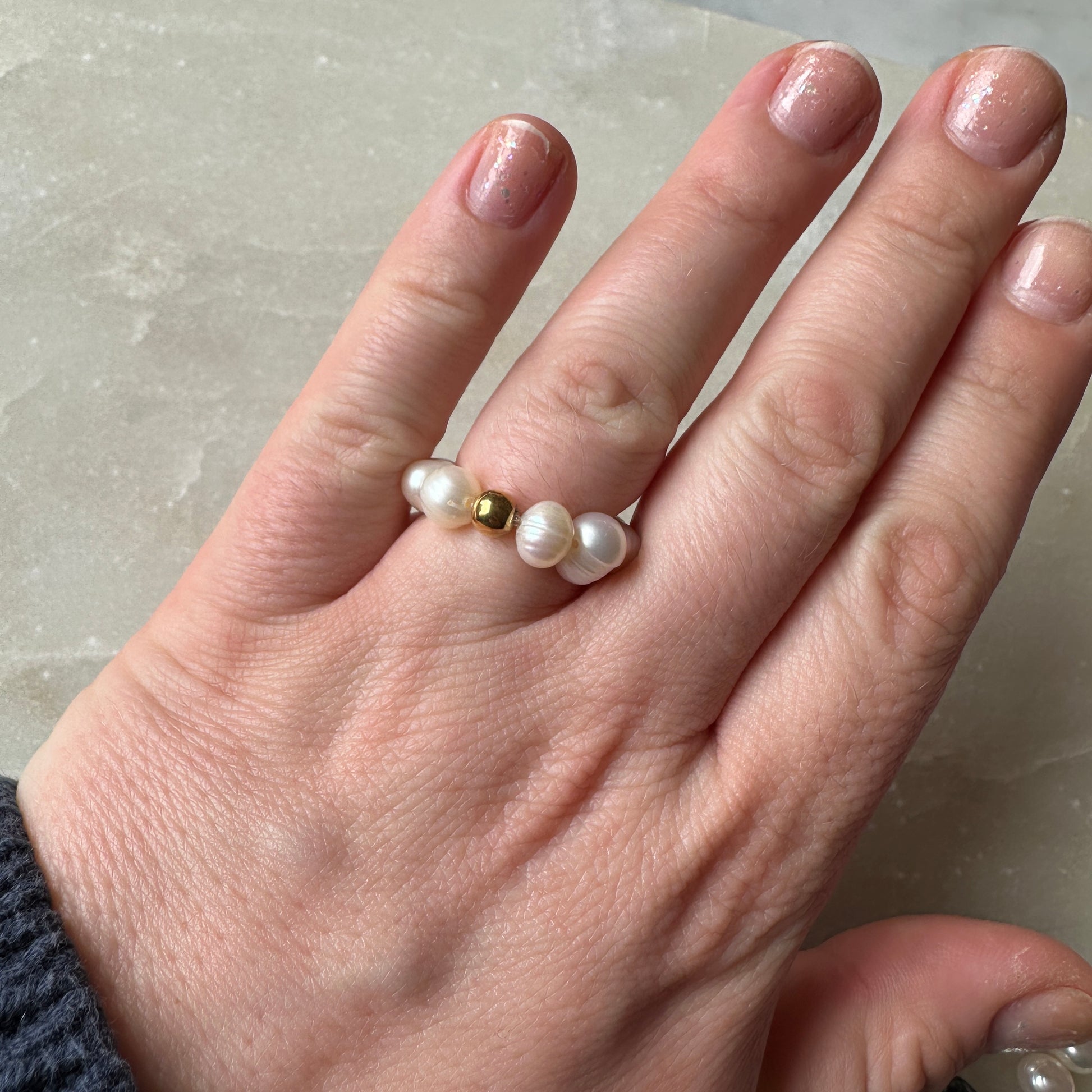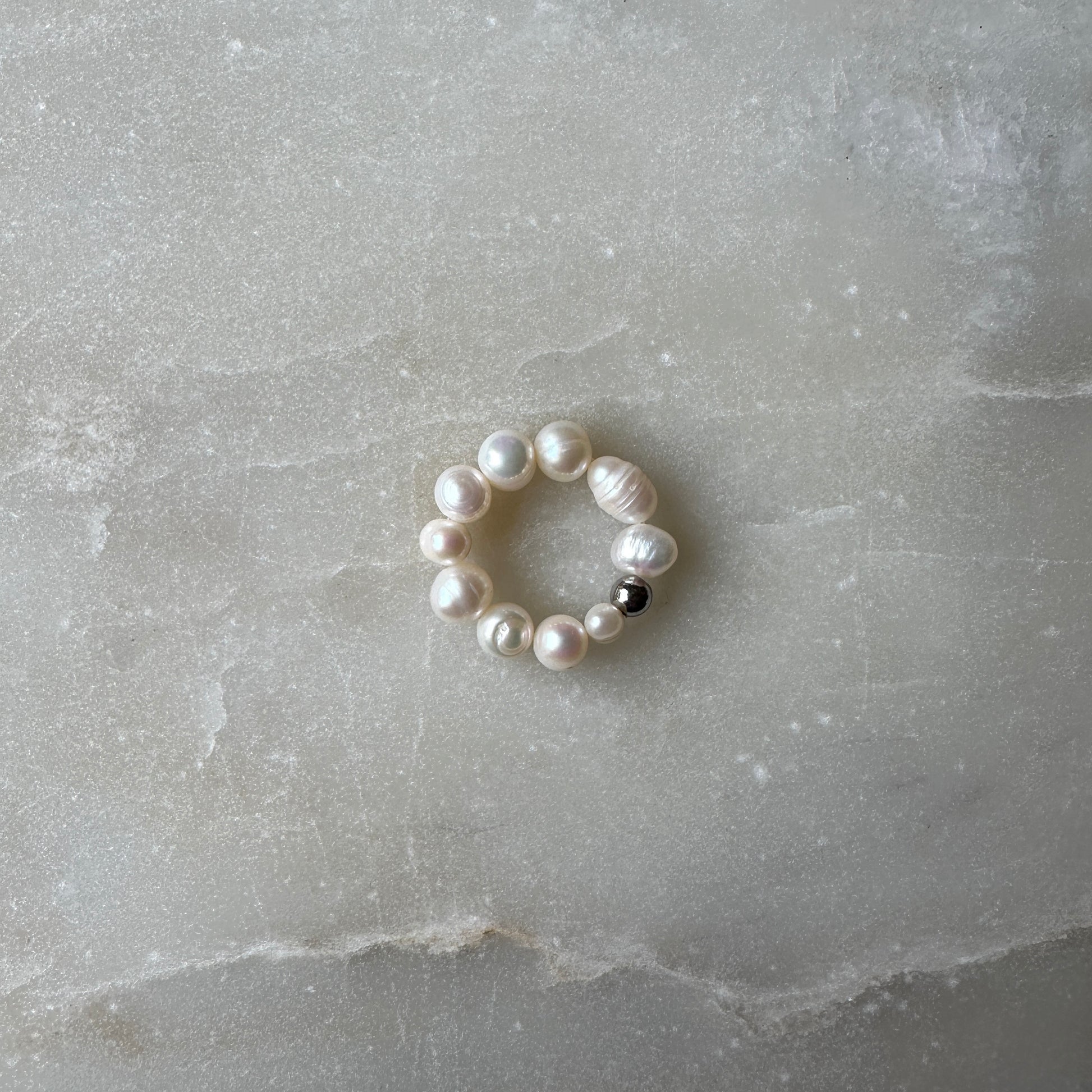 Ingegerd Ring is made of mixed freshwater pearls retrieved from vintage jewellery, reused and given a new life. The ring is minimalistic and elegant, yet distinctive - the pearls used in this model are a bit bigger.