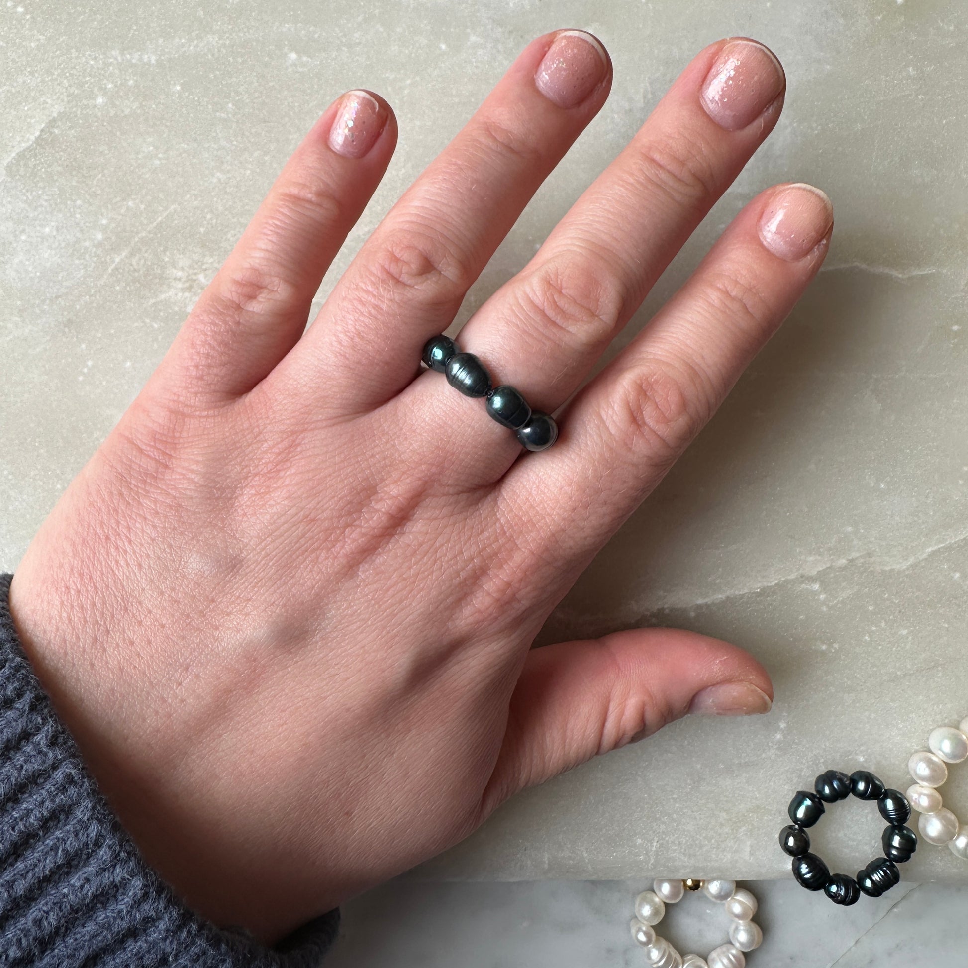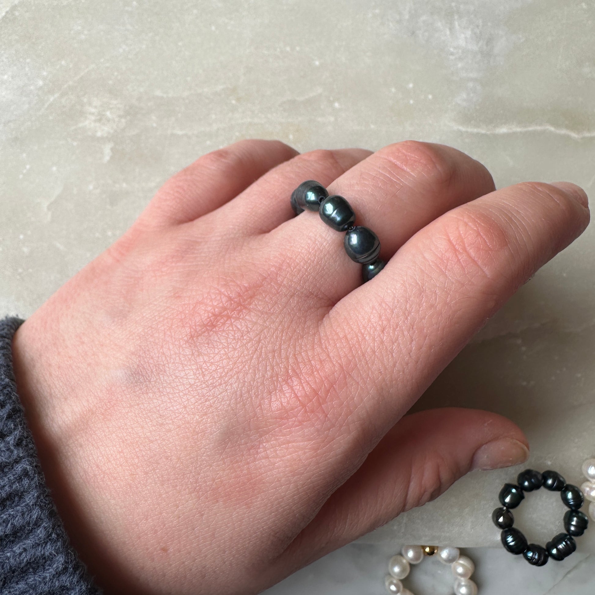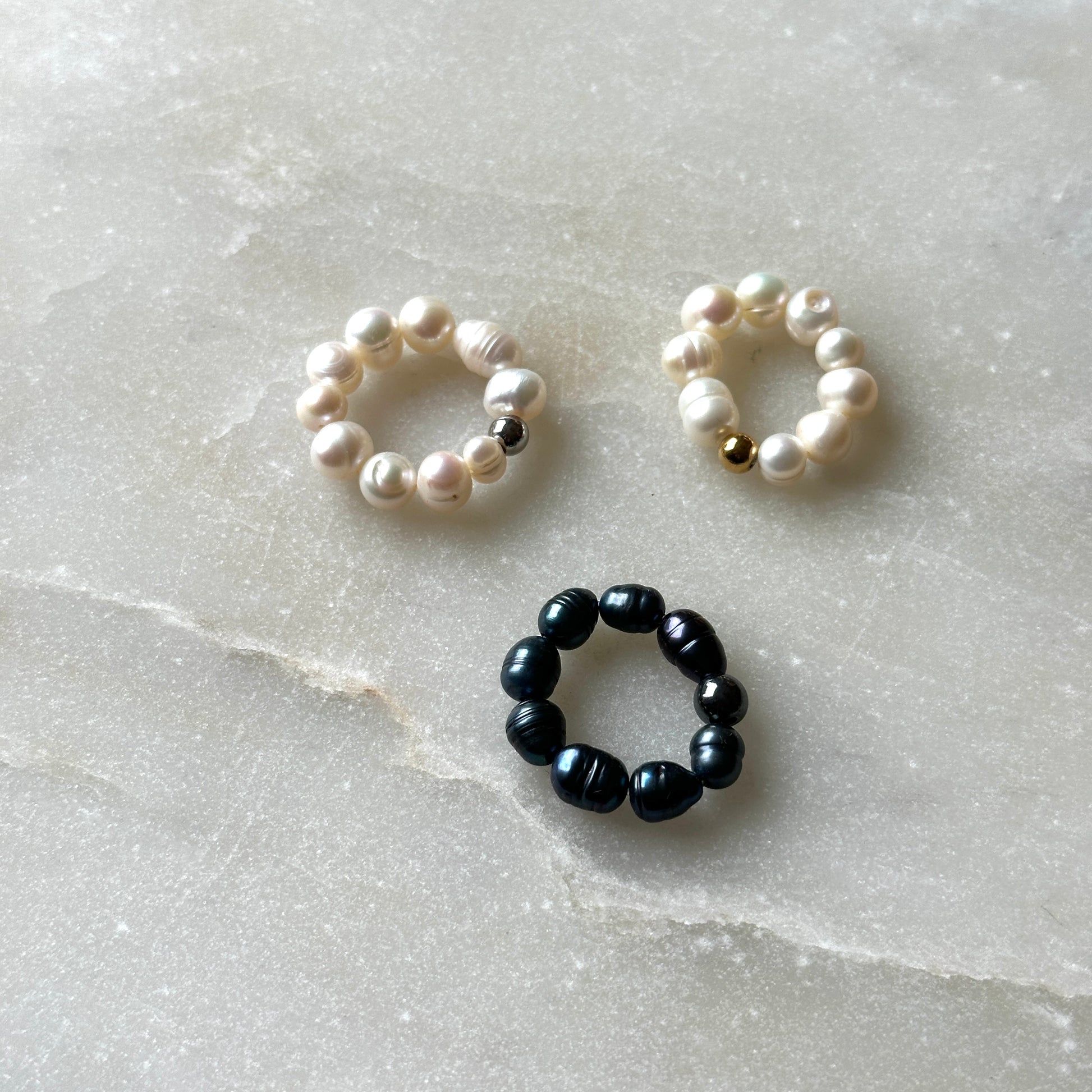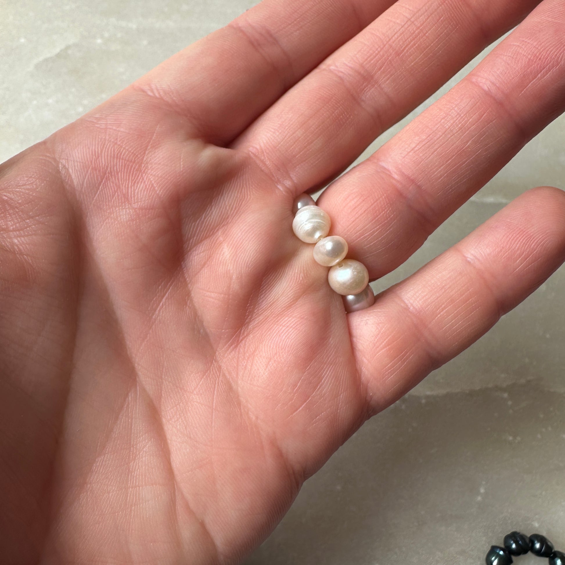 Ingegerd Ring is made of mixed freshwater pearls retrieved from vintage jewellery, reused and given a new life. The ring is minimalistic and elegant, yet distinctive - the pearls used in this model are a bit bigger.