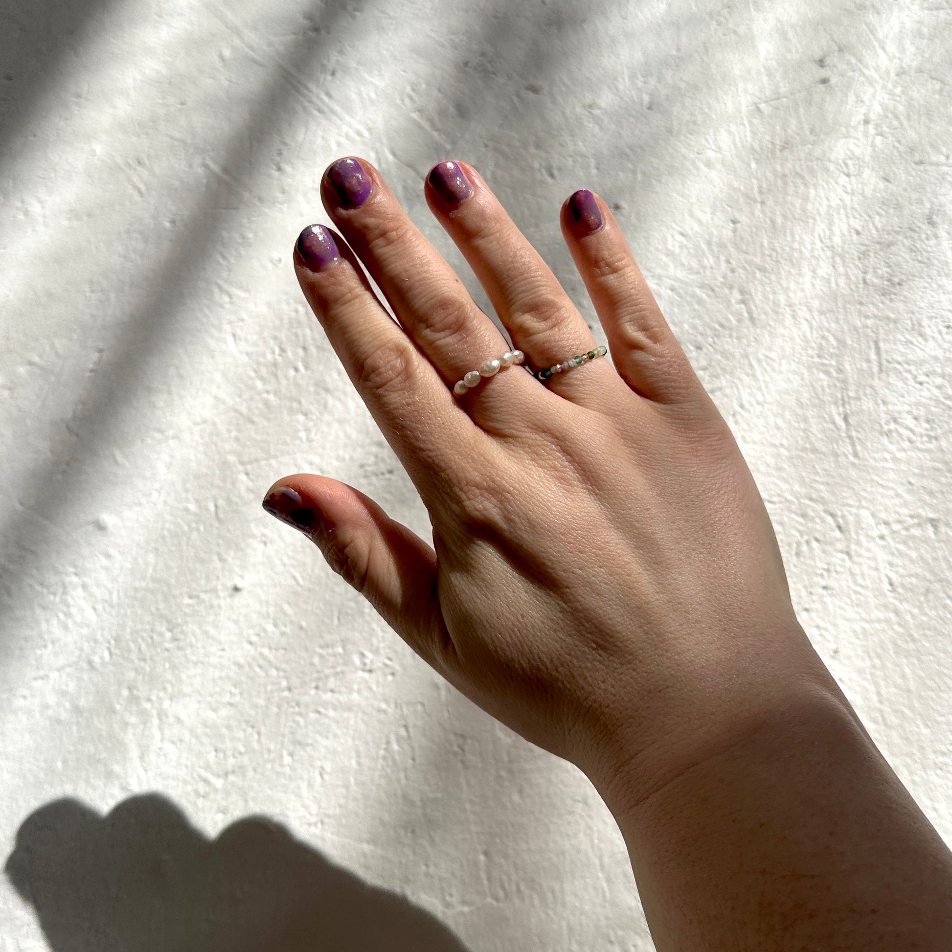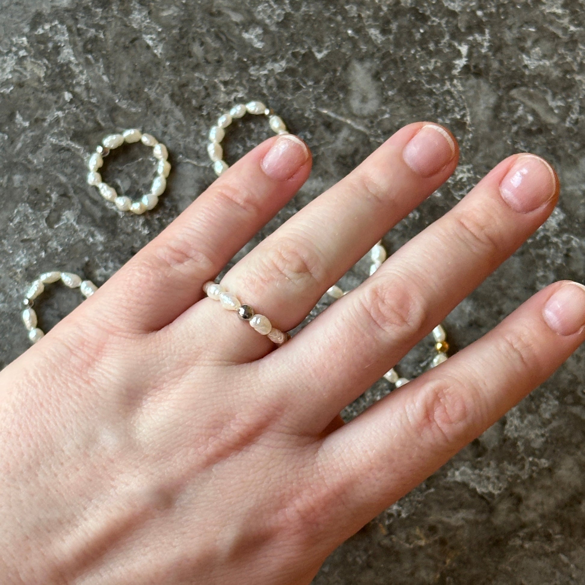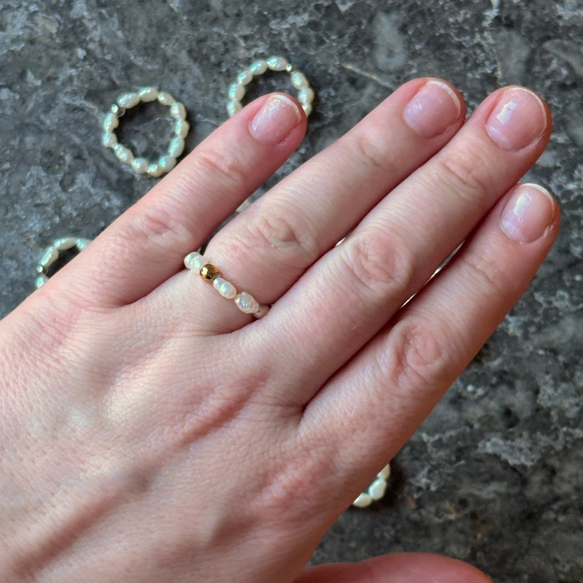 Valentina Ring is minimalistic and elegant, but unique and beautiful. Small genuine pearls are visible on the finger in a very distinctive way, but can also be stacked with other jewellery.